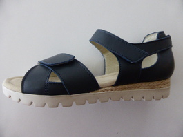 Nu-pied en cuir, entièrement doublé cuir. Fermeture et réglage par 2 bandes à scratch. Ce modèle est monté sur une semelle extérieure élastomère et corde.